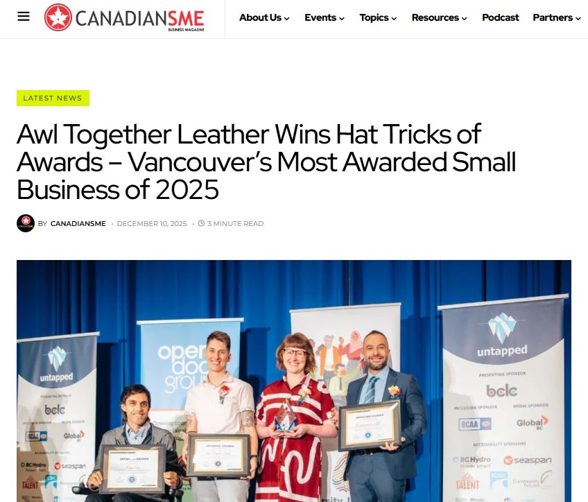 Read more about this in BC Business’s article about Awl Together Leather
